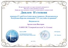 В мае 2021 студенты ГАПОУ РК «Северный колледж» совместно с учениками старших классов школ г. Петрозаводска приняли участие в ежегодном конкурсе по написанию CV и Cover Letter (резюме и сопроводительного письма).
