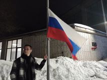 В этот понедельник на церемонию была приглашена группа ПК-2, а честь поднять флаг за активное участие в жизни колледжа и хорошую учебу выпала Денису Зубко.