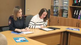 Инспекторы по делам несовершеннолетних, майор полиции Айгуль Гирфанова и лейтенант полиции Наталья Сазанович, обсудившие вопросы административной ответственности подростков и правила поведения в учебных заведениях и на улице.
